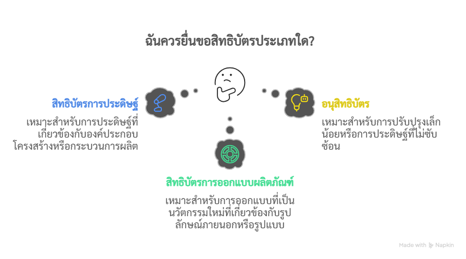 สิทธิบัตรการประดิษฐ์ หมายถึง การให้ความคุ้มครองการคิดค้นเกี่ยวกับลักษณะองค์ประกอบโครงสร้าง หรือกลไกของผลิตภัณฑ์ รวมทั้งกรรมวิธีในการผลิต การเก็บ รักษา หรือการปรับปรุงคุณภาพของผลิตภัณฑ์